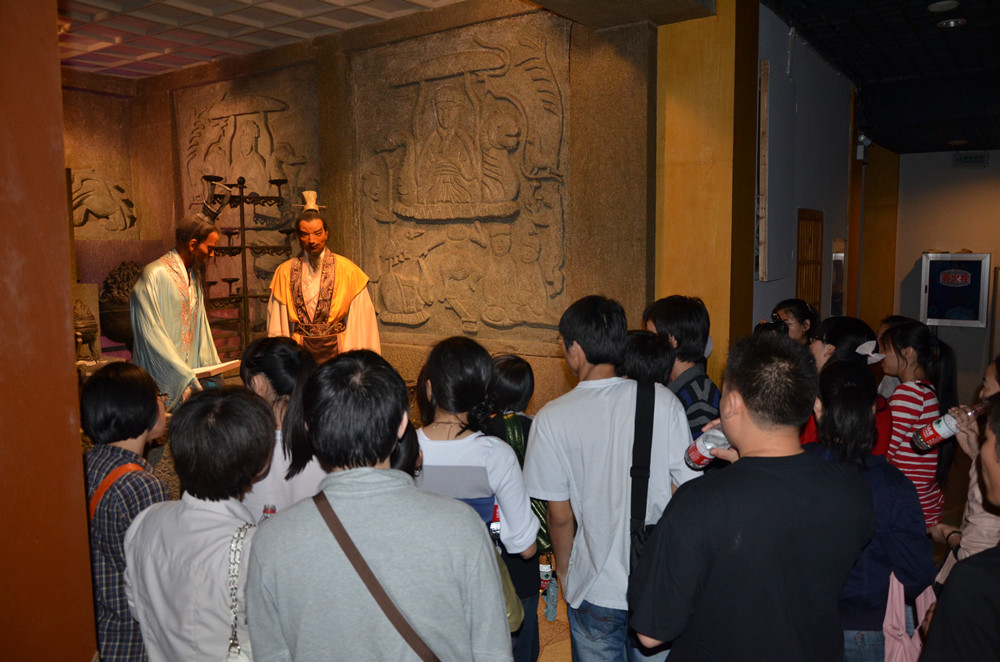 第一站,我们来到了位于西郊大蜀山风景区的安徽名人馆,这里展出了史前至清朝之间的50位有影响的安徽历史名人。进入馆中,听着讲解员专业的介绍,看着一个个形象逼真的蜡像名人,聆听着运用光影科技手段展现的名人故事,大家心中不得不感叹安徽大地的人杰地灵、人才辈出。在这里,我们不但欣赏了安徽历史悠久的灿烂文化,而且经历了一次深刻的爱国主义教育。