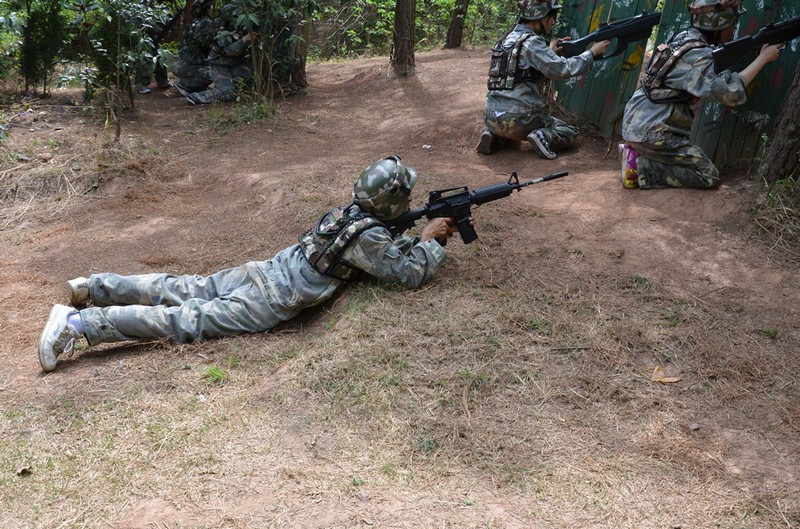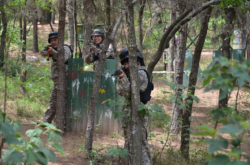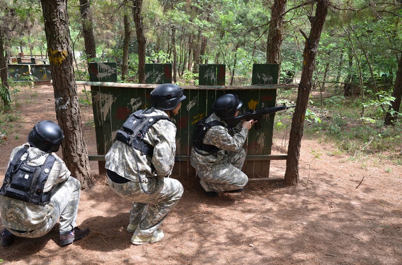 午饭后,我们迎来了今天的重头戏,也是大家最期待的紫蓬山拓展基地真人CS项目。大家换上迷彩服装备,手中拿着武器,还真有作战队员的模样。教练把我们分成了两队进行对抗,我和赵鑫有幸分别成为蓝队和红队的队长。作为队长,我们负责队员的安全,安排小队的战术,还要身先士卒、冲锋在前。
