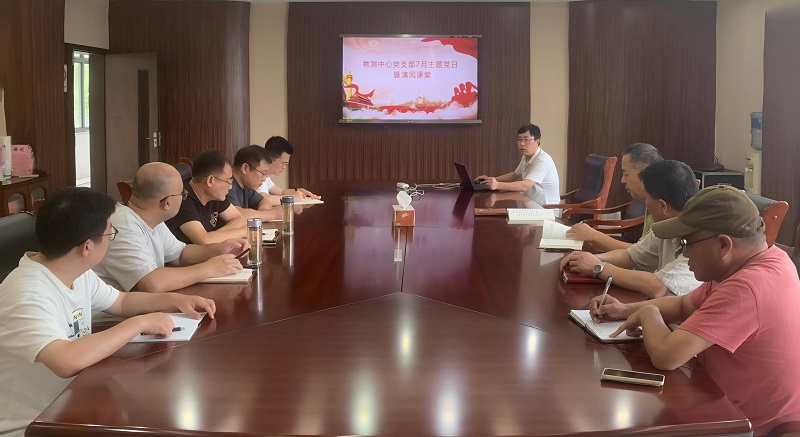 7月28日,物测中心党支部开展7月主题党日暨清风课堂?;嵋橛芍Р渴榧前裁髦鞒?。