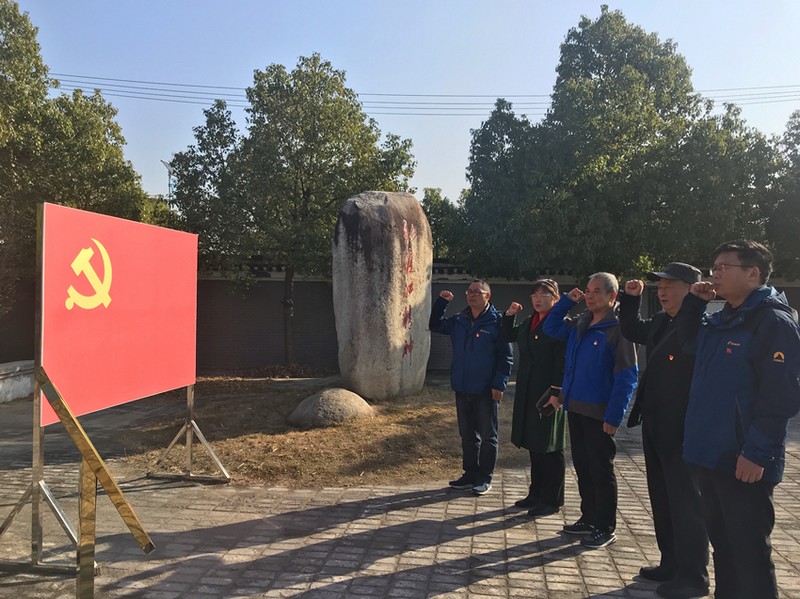 活动当天,大家分别瞻仰了中共中央华东局旧址、总前委参谋处旧址、机要处旧址、秘书处旧址等遗址。在纪念馆广场的党旗前,离退休党支部党员们佩戴党员徽章,举起右手庄严宣誓,重温入党誓词。