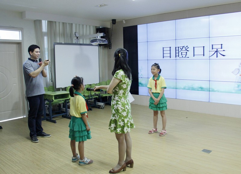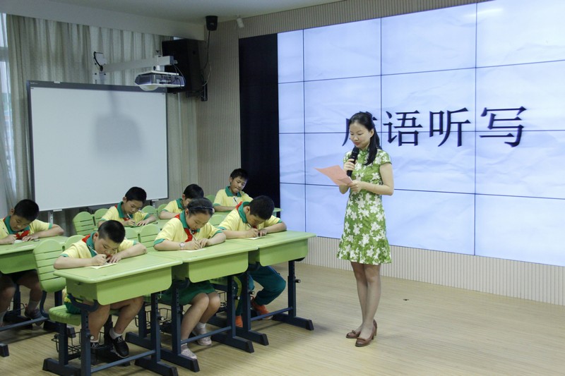 本次成语互动比赛共设置了成语听写、成语填空和你比我猜三个环节。同学们通过班级组队合作的方式参加每轮环节:成语听写中,小选手安静聆听、细心着笔、认真检查;成语填空中,小选手轮流作答、沉着应对、抢答激烈;“你比我猜”中,小选手绞尽脑汁、比手画脚、默契合作……整个活动中,同学们充分发挥自己的聪明才智,拓展思维,积极参与,热情高涨,加油声、欢呼声、欢笑声充斥全场,把活动气氛推向一个又一个高潮?;疃詈螅滞盼棵窠钡难∈职浞⒘私逼?,并向青年路小学捐赠了百余本图书。