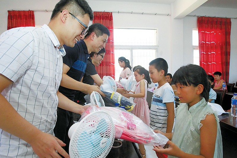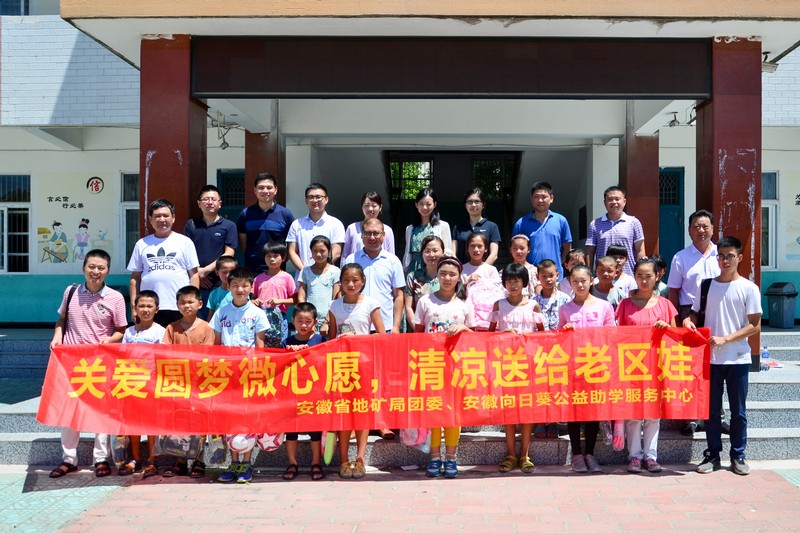 暑期三下乡,是省文明办确定的全省学雷锋志愿服务主题月系列活动之一。皖西是红军的故乡、将军的摇篮,但革命老区仍有一些孩子由于生活贫困,生活和学习条件有待改善?!肮匕裁挝⑿脑?,清凉送给老区娃”活动,是共青团安徽省地矿局委员会、安徽向日葵公益助学服务中心践行“暑期三下乡”的具体行动,旨在将关爱和清凉送给孩子,鼓励他们在逆境中自强不息。
