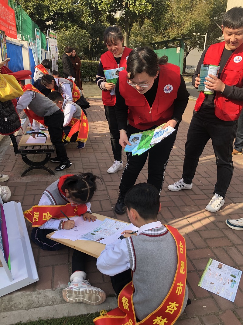 活动现场,青年科普志愿者们通过设立科普讲解宣传点、搭建“古生物的遗传——化石燃料”“珍爱美丽地球 守护自然资源”等科普展板,发放“呵护地球美丽生灵倡议书”宣传册等形式,向社区居民普及野生动植物?;ぶ叮樯芤吧参锛壑导氨;ひ吧参锏囊庖澹蚓用翊荨肮刈⑵旖⑽镏直;ぃ平览鲋泄ㄉ琛敝魈饫砟?。来自杏林小学11名小志愿者也参与其中,他们以“学一学”“画一画”“写一写”的形式,用充满童真的美术作品描绘丰富多彩的野生动植物,呼吁大家一起关注“世界野生动植物日”。