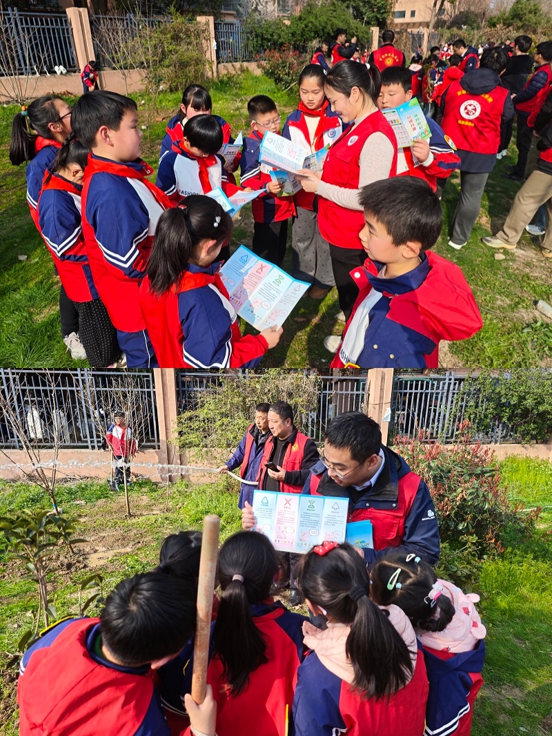 植树间隙,青年志愿者们化身“环??破招薄?,为共同参与活动的小学生带来一堂生动鲜活的垃圾分类知识小课堂。志愿者用通俗易懂的语言,详细讲解了垃圾分类的标准以及守护绿水青山的意义,引导孩子们树立“垃圾分类 从我做起”的环保理念。