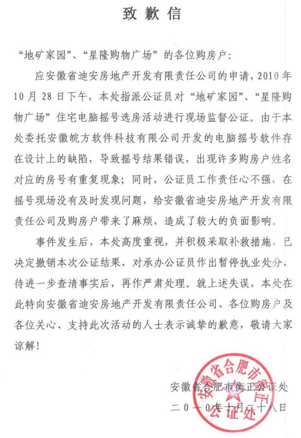 关于“地矿家园”和“星隆购物广场”住宅重新电脑摇号选房的公告