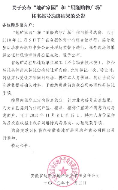 地矿家园、星隆购物广场住宅单元平面图的公告