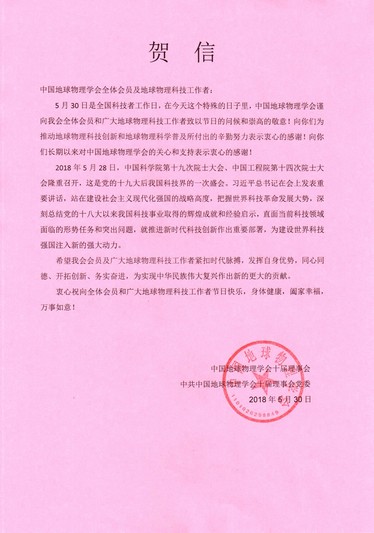 中国地球物理学会:贺信