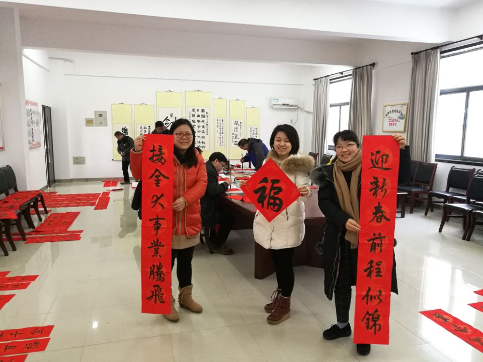 写春联活动从下午一点多开始,面对热情而来的职工,几位书法爱好者就一直奋笔疾书,一刻不得闲,力求将最好的字写给大家。已是安徽省书法家协会会员的戴传慧不仅书写春联,还和大家讲解有关书法和春联的知识,提高了大家对书法和写春联的认识。许多职工接过一幅幅墨迹未干的春联,笑意盈盈、爱不释手,开心的说,“一幅春联,寄托着一份祝福,今年的日子像这红彤彤的春联一样红红火火,感谢院里提供的这次活动,祝福院里的发展红红火火?!?/span>