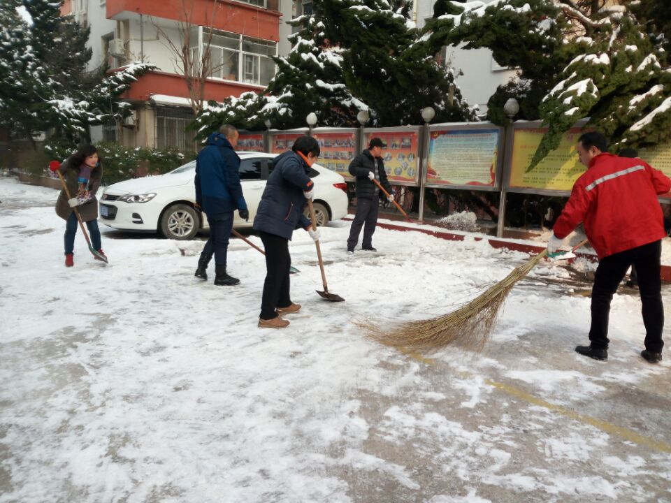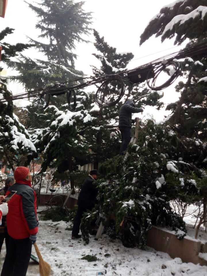 基地管理处岗位分散,在办公楼当班的职工为数不多,但一大早,大家伙来到单位就主动扛着大铁锹参加到除冰队伍中。何蓉同志,她打扫完楼道主动留下帮忙一起清理大院的冰雪;还有黄小洋,周五因为扫积雪出汗受凉发高烧还在打吊瓶,也坚持帮着除冰;宋木兵才下晚班听说了也主动赶过来参加了清扫;特别值得学习的是庄春雷同志,看到被大雪压劈的柏树枝(压在380伏的动力线上),二话没说找出斧头就爬到树上将断枝砍下,排除了一大安全隐患;管理处负责人张锦同志,虽身为领导,但每次的劳动都是身先士卒,起到了很好的模范带头作用;还有当天值班的张庚建、黄雪民,退休老党员李兰花等……这些同志不怕脏,不怕累的精神,我想应该是一物精神的最好诠释吧?