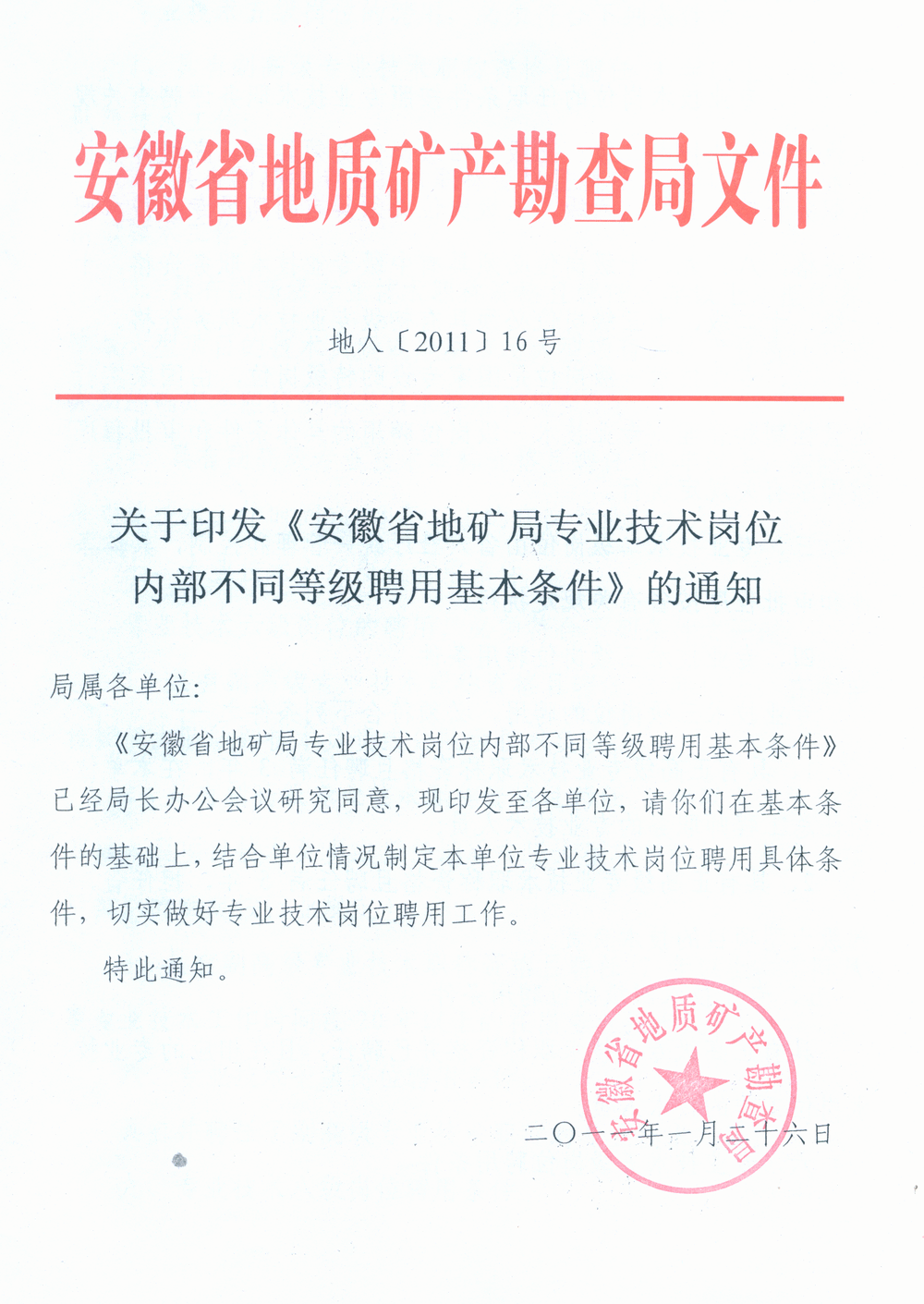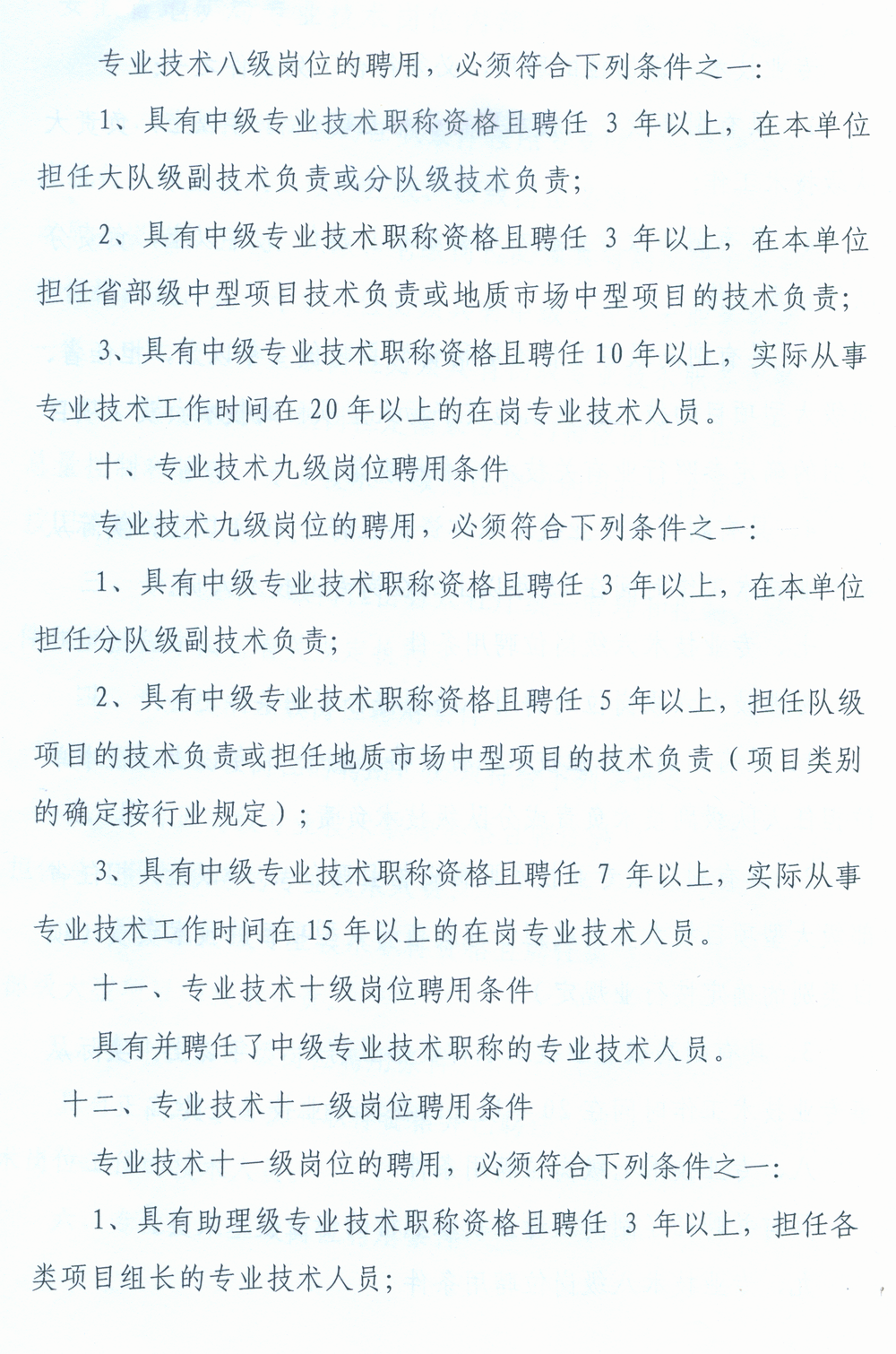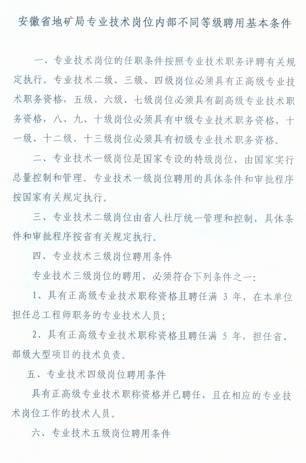 安徽省地矿局专业技术岗位内部不同等级聘用基本条件