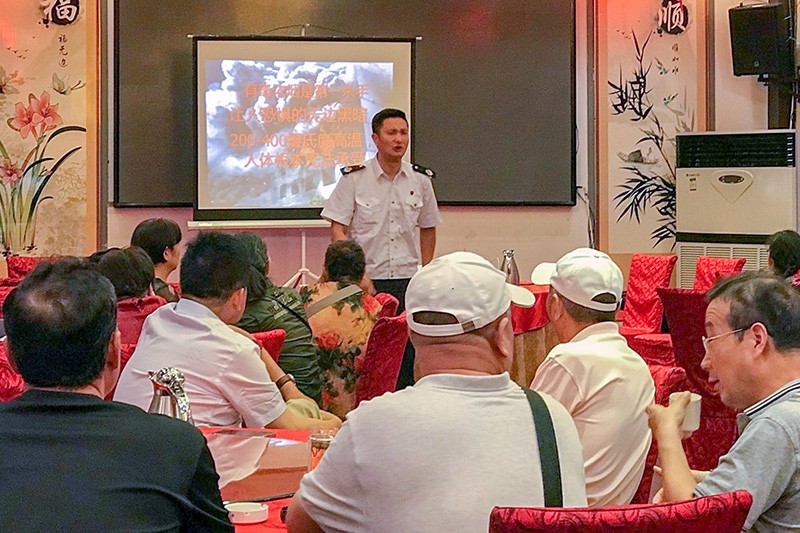 授课过程中,曹永清通过触目惊心、教训深刻的火灾案例,警示大家要高度重视消防安全,宣传了老年人在日常生活中需要注意防范的致灾因素、发生火灾后如何正确报警等等消防安全常识,讲解了家用灭火毯、防毒面罩、独立式烟感报警器的使用方法。