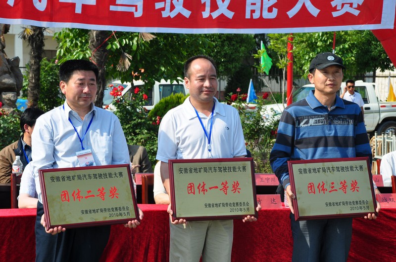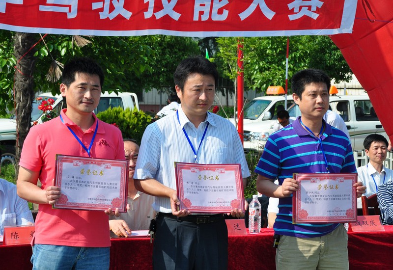 个人三等奖获得者。 地矿驾校教练员作驾驶技能表演