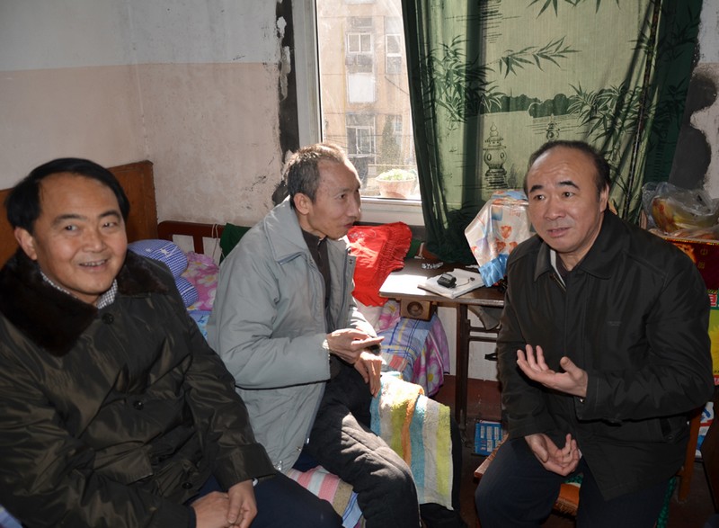 方达副局长和张明文主席在困难职工肖国庆同志家慰问。