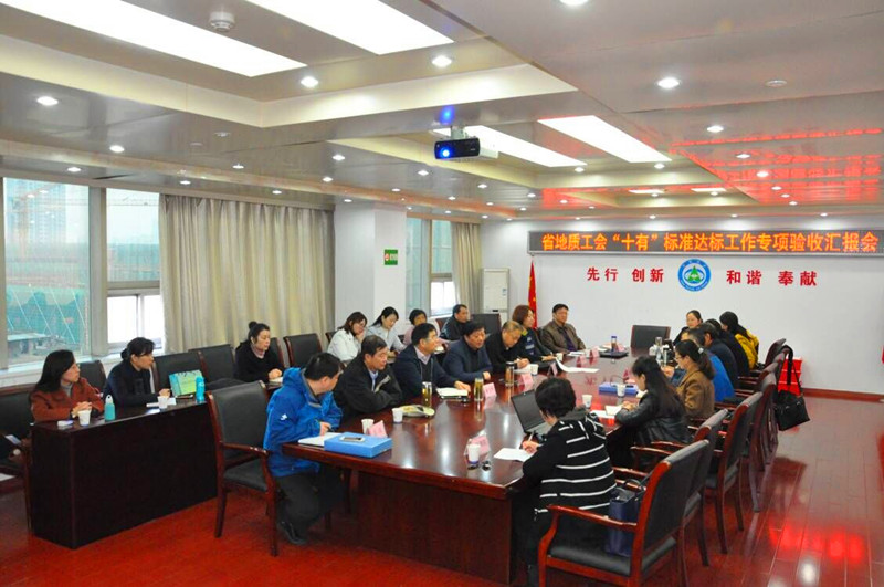 11月28日,合肥片地勘单位“十有”标准达标工作专项验收汇报会在局327地质队举行,10家地勘单位工会主席、工会工作人员近20余人参加验收汇报会,会议由省地质工会主席王宁川主持。