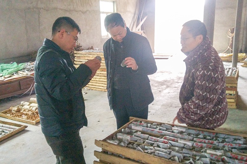 黄志忠等专家与项目负责人认真研讨了工区地质概况、重磁电异常特征及钻孔勘查情况后,共同前往岩心库仔细观察岩心,了解岩心含矿性,分析成矿元素可能来源,探讨矿体成因,初步与茶亭式金矿进行对比?;浦局胰衔钅孔楣ぷ髟担导首柿舷晔?,宣城是长江中下游具有较好找矿潜力的地区之一,并表示南京地调中心与安徽省勘查技术院具有良好的合作基础,期待后续进一步合作。(张旭)