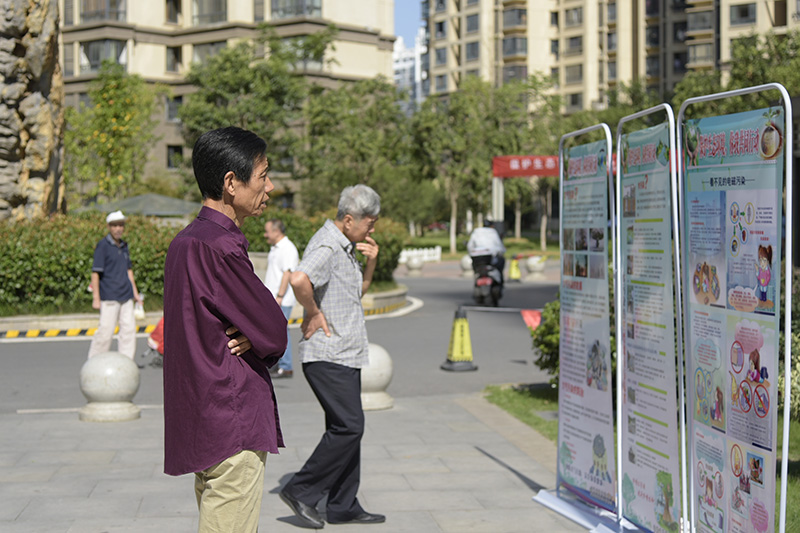 市民在观看宣传展板