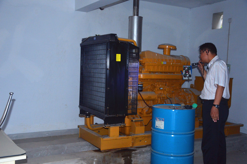 测试开始后,参与人员各尽其责,纪委书记李东海监督了电梯的安全运行过程。后勤服务中心主任褚前卫全程监测水温、油温以及发电机的转速,如果发生异常就及时断电,确保了测试过程的安全。电工郭坤山、甘正卫在配电房对各个系统的断电、供电进行严格细致的操作,保证测试的顺利进行。
