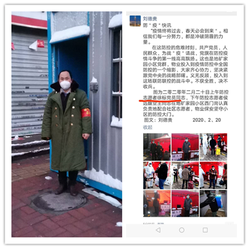 蚌埠基地管理处主任张锦:蚌埠疫情形势较为严峻,防疫期间我们按照院级指示,对蚌埠基地和职工小区进行了加强管理。在门岗工作人员因为与疑似病例有接触史而居家隔离的情况下,我们7名党员干部带头值守,严格管理基地人员进出;对近130名退休职工,通过电话、微信、QQ、短信等方式进行关心询问,其中对空巢老人我们采取了人员分包制和邻里守望的方式,确保他们在疫情期间的生活必需品能够得到及时供应;对因接触感染者而隔离的职工和家庭,我们在院领导的嘱托下,转达了组织对他们的关心和慰问并购买了一些生活用品,送至隔离点,一定程度上缓解了困难;在蚌埠地区,我院职工的宿舍小区多且分散,我们与当地社区积极沟通、配合,确保各小区得到有效监督和管理;在接到院复工通知后,我们积极联系政府相关部门,采购了一批酒精、84消毒液和口罩等防护用品,保证了按时复工。