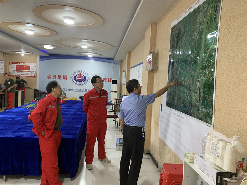 许传建认真听取了项目工作汇报,仔细查看了相关资料和图件,并赴非震物探项目组了解了施工进度和效果。针对检查情况,他分别就质量安全、疫情防控以及施工进度作了进一步要求,并重点强调目前处于实现无为盆地常规油气和页岩油气的重大突破的攻坚阶段,该项目意义重大,必须以高质量的技术成果,为该地区油气有利区圈定和井位部署提供有力支撑。