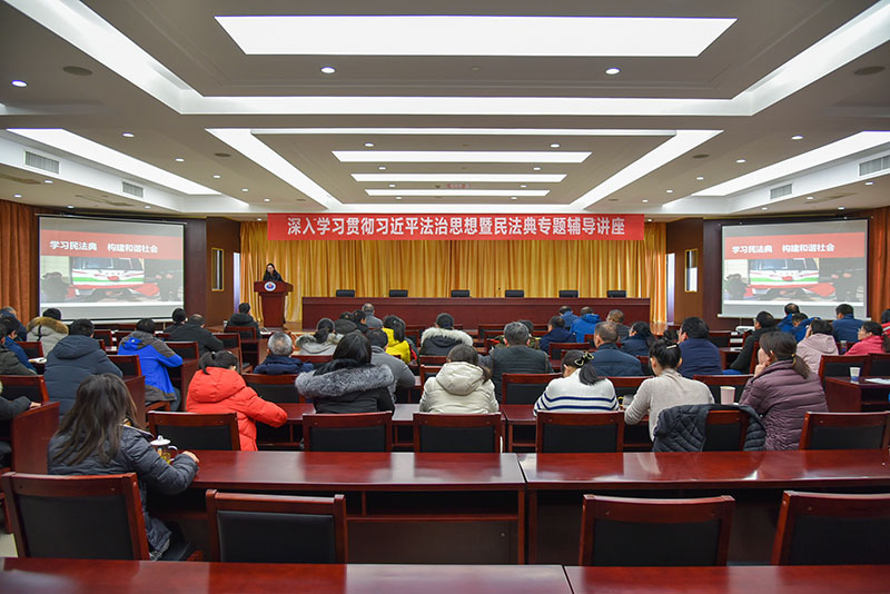 为深入学习贯彻习近平法治思想以及中央全面依法治国工作会议精神,提高全院干部职工法治意识和法治素养,汇聚全面依法治院的强大合力,12月15日,我院举办学习贯彻习近平法治思想暨民法典专题辅导讲座,邀请合肥工业大学文法学院副教授霍敬裕主讲。院党委委员、纪委书记李东海主持会议。全院110余人参加学习。