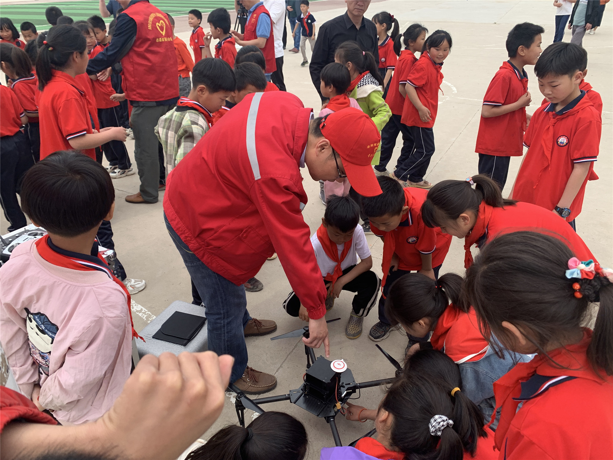 在“探索地球的奥秘”科普课堂,志愿者从地球的构造、地质地貌、地质现象等多方面,向孩子介绍了我们赖以生存的美丽星球,增强孩子们保护环境、珍爱地球的意识;在古生物科普课堂,志愿者带领孩子们认识古生物化石,了解远古生物,学习生物在地球上的衍化历程,激发孩子们对地球的探索热情;在无人机科普知识环节,志愿者给孩子们普及了无人机的种类、作用等,孩子们被现代无人机科技深深地震撼。志愿者采用图文并茂的方式,语言通俗易懂、妙趣横生,并不时与孩子们互动,在问答环节,孩子们踊跃抢答,课堂气氛十分活跃。在室外课中,志愿者带领孩子们来到学校操场,现场观看无人机表演,操作无人机,近距离感受科技的魅力。