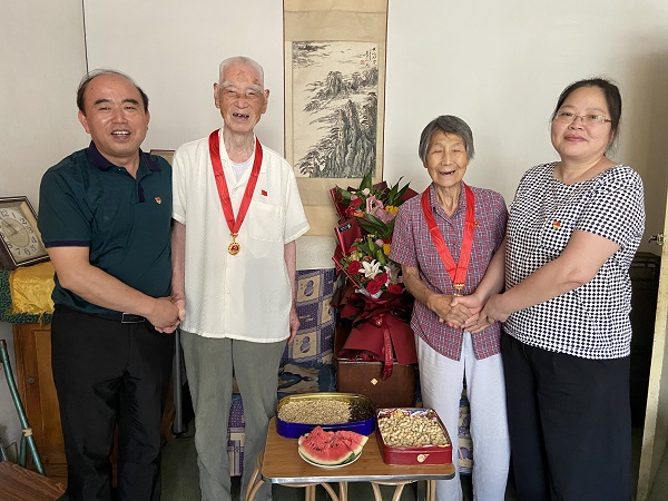 院领导来到离休干部刘杰山、谢仲春两位老同志家中,看到他们身体硬朗、精神矍铄,深感欣慰,并向他们颁发了“光荣在党50年”纪念章,同时致以亲切问候和崇高敬意。两位老党员表示倍感光荣神圣,感谢院党委的关心关怀,要继续为党的事业奉献智慧和力量。