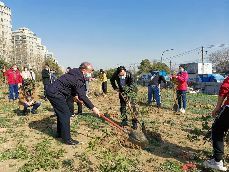 在植栽现场,党员志愿者们在纪委书记陈勇、副院长何家国、杏林街道党委书记石际和望城社区党委书记韩丽的带领下,挖坑、栽树、填土、夯实,大家分工明确、默契配合,整个植树现场到处可见忙碌的身影。大家挥舞着铁锹,挥洒着汗水,经过近1个多小时热火朝天的劳动,共同植下桂花和白玉兰等树苗数十余株,用欢笑和汗水为社区增添了一抹亮丽的新绿,给人们带来了春的气息。