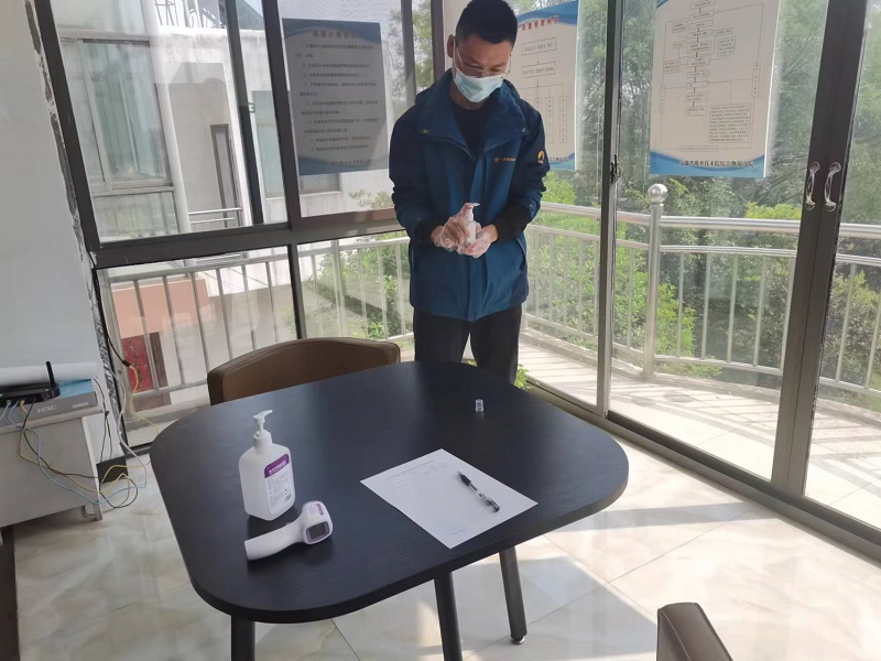 演练开始前,项目负责人组织参加人员进行疫情防控知识宣贯,对演练中的注意事项进行详细交底。本次模拟演练了某项目组在晨检过程中,防疫值班人员查验“一温两码”时,发现某职工行程码带星号的应急处置。值班人员第一时间向现场项目负责人报告,并将其引导至临时留观室,详细了解登记近期行程轨迹。项目负责人迅速启动应急指挥体系和先行处置机制,并核查防疫台账,同时向分院领导和院安保科报告。根据模拟处置流程,项目组安排指定车辆将该名职工送到指定地点进行核酸检测。疫情防控人员对办公场所进行消毒。