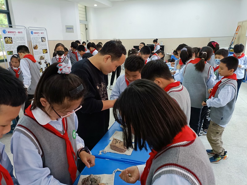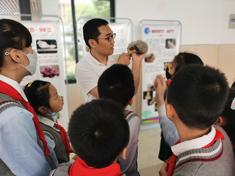 本次活动以“走进科技 你我同行——打开地学之门”为主题,通过岩石讲堂、观摩交流等方式,围绕岩(矿)石知识、地质灾害等方面开展。岩石讲堂,结合小学科学课的矿物与岩石课程内容,通过我院的30余件岩(矿)石标本和10张岩(矿)石知识展板,向小学生传授岩(矿)石知识,使他们对岩(矿)石有了感性的认识,了解岩(矿)石的形成、勘探、开采过程以及岩(矿)石在我们生活、经济建设中的作用。小学生们在学习地质灾害知识,识别地质灾害的同时,掌握了自我?;ぜ寄?。