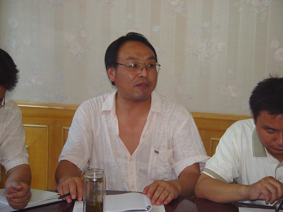 物探分院支部书记蔺国栋同志介绍单位情况 电法所所长徐自生同志介绍单位情况