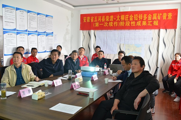 在项目部,侯其标主持召开了项目阶段性成果汇报会。省地调中心、我院有关人员汇报了五河地区前期找矿工作总体情况及本次工作取得的阶段性工作成果,与会人员开展了研讨交流。孙林华作了指导性讲话,他首先对该项目取得的阶段性工作成果给予充分肯定,向奋战在一线的地质工作者表示亲切慰问,并指出,要在地质找矿突破、方法技术攻关、理论体系建设和协同机制建立上不断探索,更好展现安徽地矿人的新形象。就如何做好下一步工作,孙林华提出五点要求,一是要树立更高目标,力争找好矿、找大矿,在进一步扩大找矿成果上下功夫;二是要精心组织安排,加强与各施工单位的协调和沟通,高标准、高质量完成所有钻探施工任务;三是要重视成果集成,加强成矿规律和成矿机制研究,认真总结并形成具有自己特色、在国内领先的物化探找矿方法体系,指导相关区域的地质找矿工作;四是要超前谋划,早研究、早部署、早行动,力争在新一轮找矿突破战备行动中展现安徽地矿人的新作为;五是要加强宣传工作,特别是研究性成果的宣传,树立品牌意识,努力把五河地区的找矿工作打造成全国找矿热点之一。