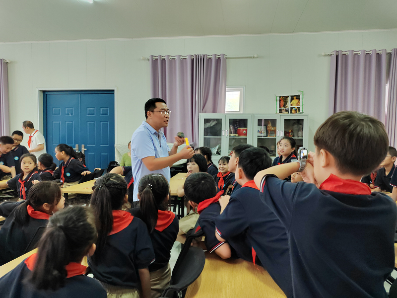 9月14日,我院科技志愿服务队走进合肥市四河小学,开展地质科普进校园活动?;疃钥破战沧涂蒲∈笛榈姆绞秸箍?,科普讲座以“解读岩石语言”为题,结合生活常识,系统性剖析岩石与矿物知识;在科学小实验环节,鼓励学生自己动手体验矿物的神奇之处。