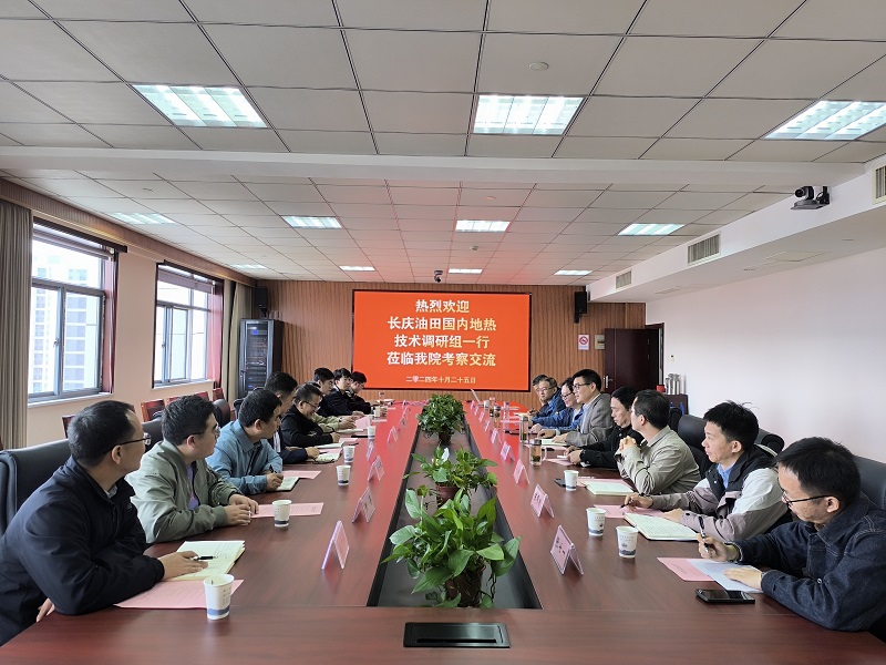 10月25日,长庆油田国内地热技术调研组来院考察交流。党委书记、院长姚波主持会议,副院长、总工程师熊强青作专题汇报,党委委员杨志成到会交流。