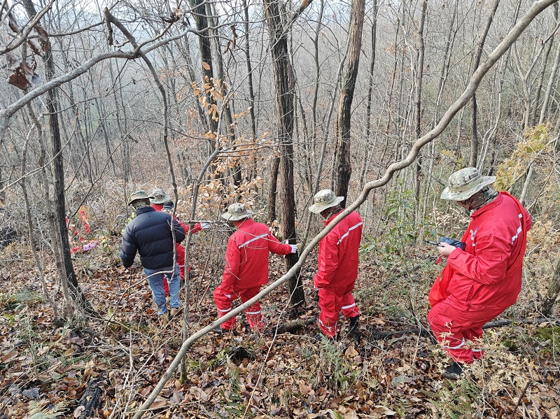技术人员正在野外测量放样