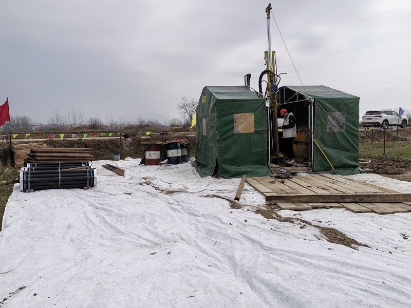 2月8日(正月十一),恰逢寒潮来袭,气温骤降至零下7℃,综合物探分院承担的省地勘基金项目“安徽省凤阳县亮岗-屈家湾石墨矿普查”安排钻机进场施工。由于施工时间紧、任务重,钻探工作采用“三班倒”的高效运转模式。该项目以寻找石墨矿和金矿为主要找矿目标,目前技术人员正全身心投入岩心编录和综合研究工作,争取早日实现战略性矿产找矿新突破。(党办综合)