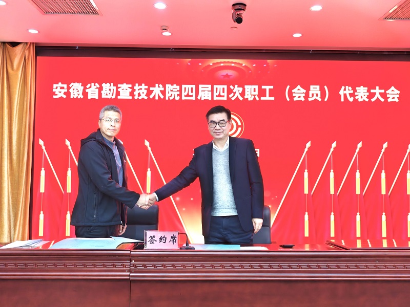 会议严格按照议程,听取并审议通过院工作报告、安全工作报告、工会工作报告、财务工作报告、工会财务工作报告,以及《集体合同》《女职工专项集体合同》履约情况报告、《安徽省勘查技术院职工带薪年休假实施办法》(修订稿);听取院领导述职报告、四届三次职工代表提案落实情况报告及干部管理情况报告;对全体中层及以上干部开展民主测评,表彰2025年度先进集体和个人等,签订年度发展目标责任状。