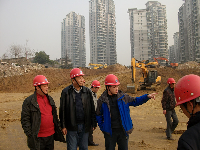 考核组在施工现场检查工作