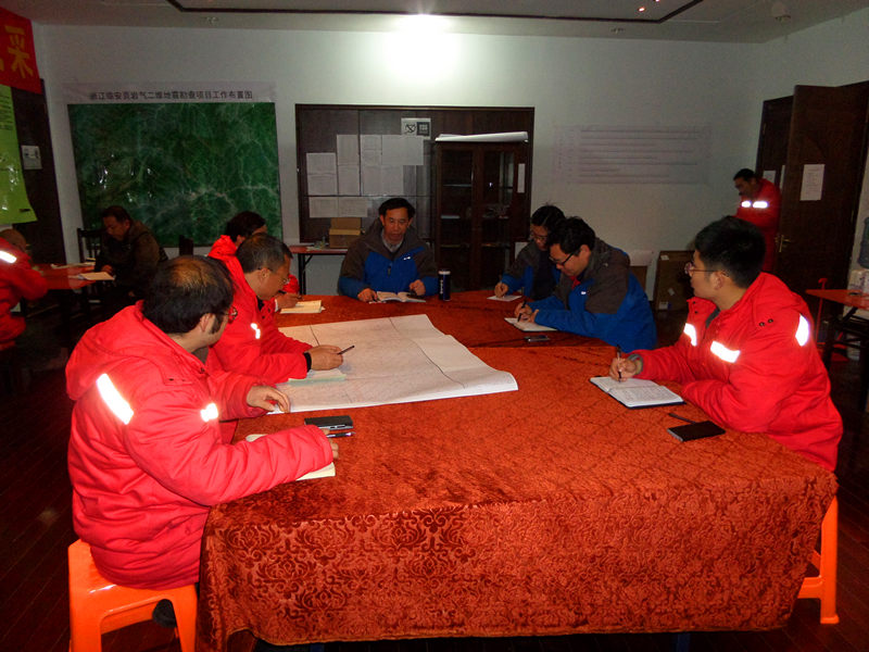 晚上,汪青松、李东海参加了地震分院的每日例会。在听取项目组成员当日工作汇报后,汪青松进行了详细点评。他表示,地震分院的干部职工充分发扬了“献身地质永当先锋”的“一物”精神,主动放弃了新春佳节与家人团聚的美好时光,毅然投入到紧张繁忙的野外勘查工作中,是以实际行动践行地质“三光荣”精神的深刻体现。汪青松还强调,地震分院团队协作能力突出,方法技术环环相扣,发展前景光明。希望大家不断总结工作经验,继续提高管理水平,充分发挥自身优势,尽职尽责、不辱使命,高标准高质量地完成浙江临安页岩气地震勘探任务,全力打造“一马当先”的地震品牌。(吴凯/图 张小胖/文)