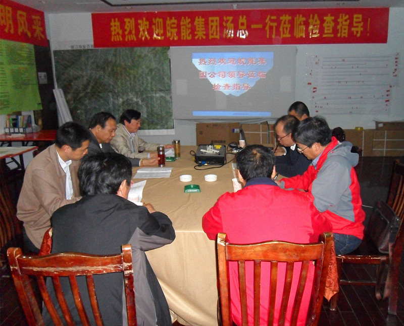 副院长汤正江详细介绍了项目工区概况及施工进展情况,就施工中存在的问题及解决方案做了具体汇报,提出了下步工作的相关安排,承诺我院将按照安徽省页岩气开发有限公司提出的工作要求,力争圆满完成野外勘查任务,按时提交高质量的勘查成果报告。