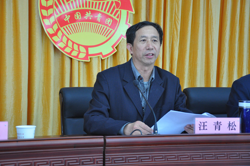 党委书记汪青松在座谈会上作报告