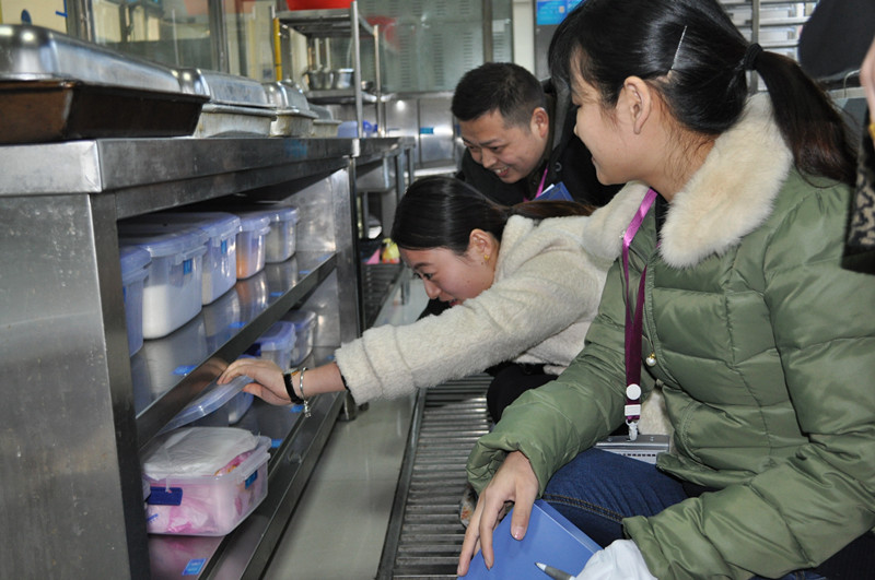 检查组严格仔细地检查了食堂的后堂、餐厅、仓库、包厢、办公室各区域的环境卫生,并详细查看标识张贴、物品摆放、食品储存等情况。