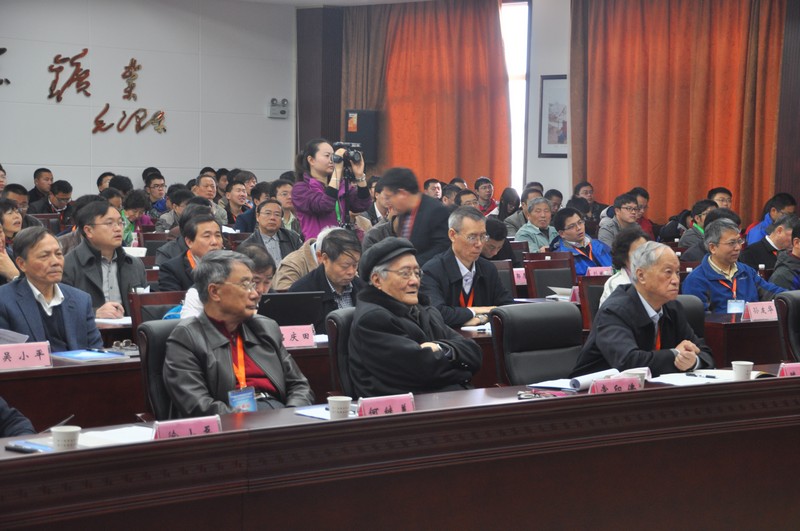 常印佛院士(前排中)、滕吉文院士(前排右)、何继善院士(前排左)参会指导