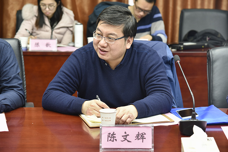 许传建对陈文辉一行的到来表示热烈欢迎。汪青松介绍了我院基本概况。朱恒银介绍了局313地质队深部钻探技术及应用,局313地质队探矿研究所工程师王强介绍了取得的主要成果和承担的重点工作。汤正江重点谈了我院在勘测锂、铍等稀有金属矿产资源的方法技术优势。院测井中心主任刘冬节介绍了我院在井中磁测、激电以及异常判断方面取得的成果。
