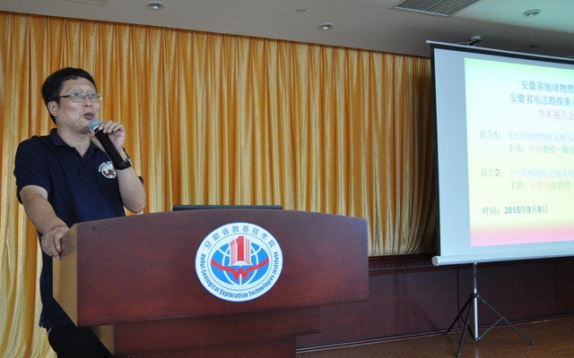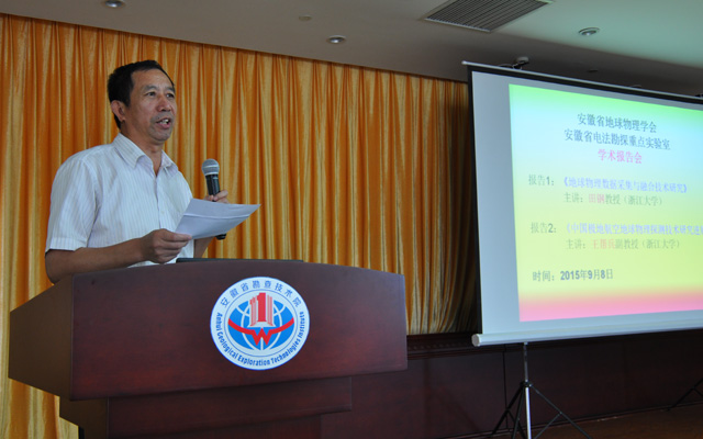 9月8日,由安徽省地球物理学会和安徽省电法勘探重点实验室联合举办的学术报告会在我院15楼会议室举行?;崆埃撼ば泶ń哟饲袄醋鲅醣ǜ娴恼憬笱У刂视氲厍蛭锢硌芯克淌?、博导、副所长田钢和副教授、硕导王帮兵。