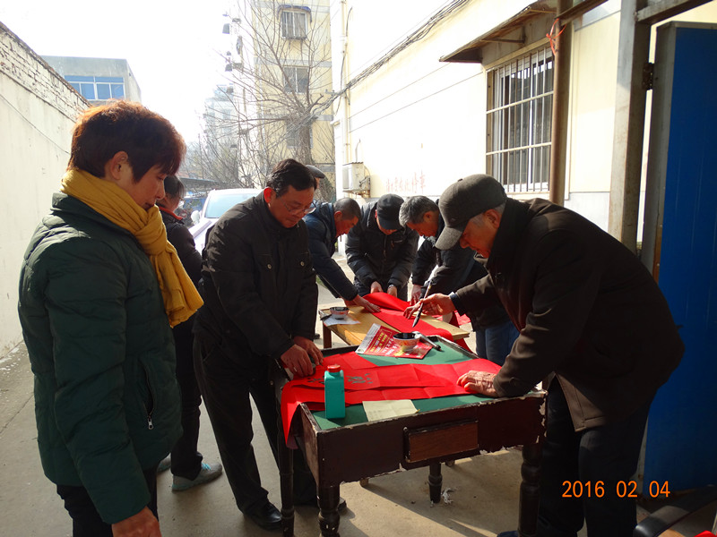 2月4日下午,合肥地矿家园小区内,院纪委书记李东海及张永德、穆晓红、苏根波、戴传慧、何援军等爱好书法的在职、退休职工为广大业主现场免费写“?!弊趾痛毫?/FONT>