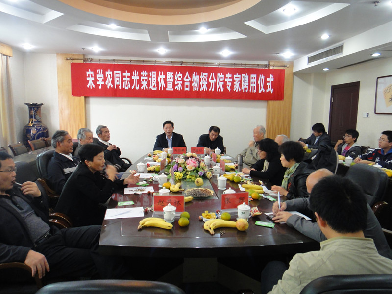 2011年10月20日下午,综合物探分院在蚌埠怀洪宾馆四楼会议室召开退休职工暨专家聘用仪式座谈会,参加会议的有综合物探分院在岗职工、退休职工宋学农、李少凤及聘用专家丁鹏飞、毕惠亭、周立龙、熊化龙、罗明光等同志。
