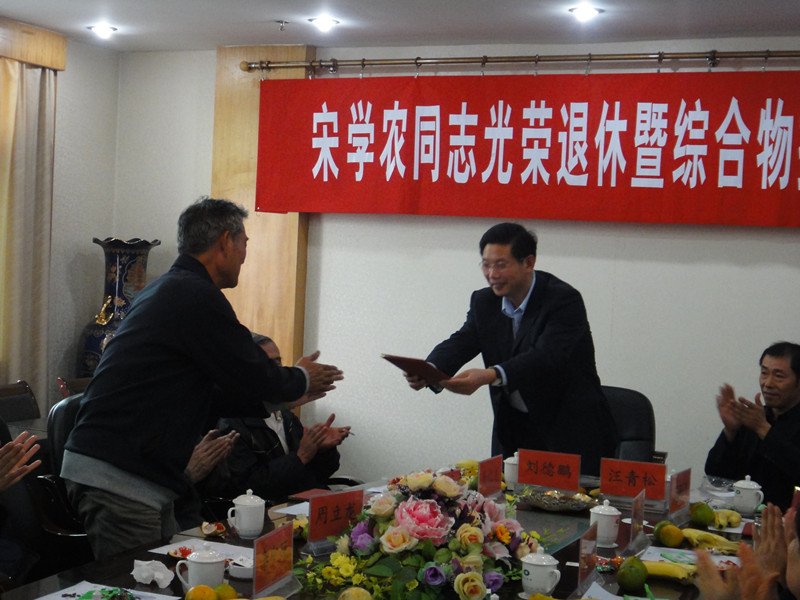 首先,物探分院院长刘德鹏宣读了院副院长兼总工汪青松同志的祝贺词,对宋学农、李少凤同志光荣退休表示祝贺,对多年来关心和支持综合物探分院发展的老专家表示衷心感谢。刘德鹏院长重点介绍了宋学农同志在一物三十多年工作情况和业绩,她先后17次被评为院(队)、党委授予的先进工作者和优秀共产党员,“勤劳、敬业、奉献、模范”是对她工作最好的概括。希望同志们向她学习,努力工作,爱岗奉献,将这种敬业精神在工作中继续发扬。