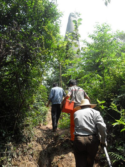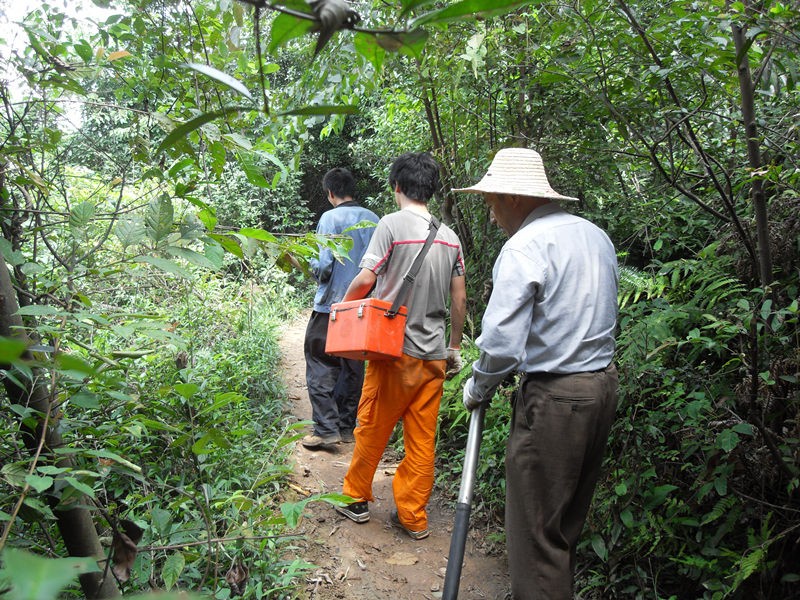 在山区密林小道演练驱赶毒蛇