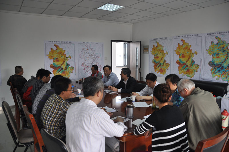 会上,综研室三名技术骨干陶龙、安明、张启燕就安徽省矿产资源潜力评价中“成矿区带地质地球物理特征”专项研究与编图成果进行了展示汇报。参会人员尤其是青年技术骨干就此课题交流了自己的看法与体会,在场专家根据具体内容进行了详细辅导和示范。