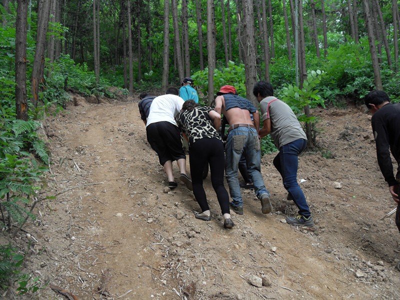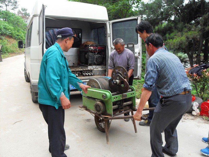 王鹏和民工一道,齐心协力把绞车运到井场